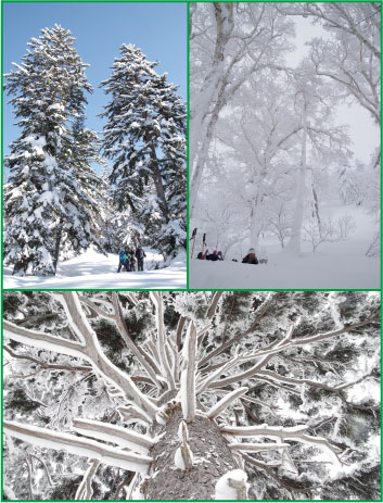 A primeval forest protected from both natural and man-made disasters. Let’s take a leisurely stroll while gazing up at the towering trees nurtured in the harsh snowy terrain.
