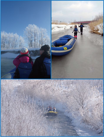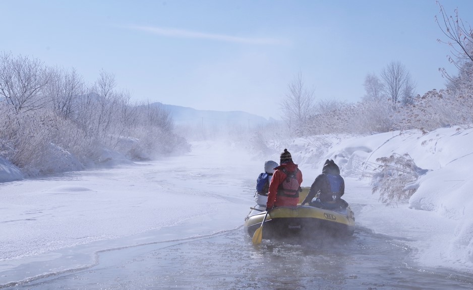 Let‘s enjoy a leisurely river cruise, but also have moments of energy as we paddle, turn the boat into a sled and slide down snowy slopes, and play actively in the deserted riverbanks.